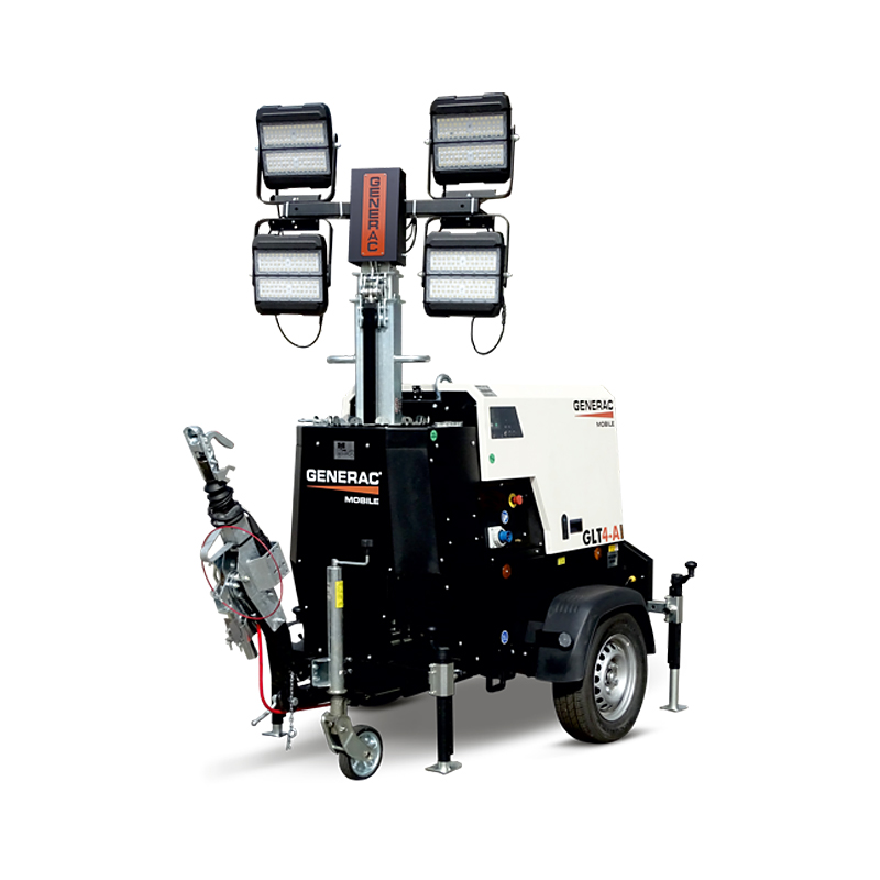 Ο πύργος φωτισμού Generac GLT4-A Hybrid Light Tower λειτουργεί χωρίς γεννήτρια και χρησιμοποιεί λάμπες αλογόνου. Το μέγιστο ύψος του πύργου φωτισμού είναι 5.5m, 7m και 9m. Επιπλέον, ο GLT4-A Hybrid πύργος φωτισμού διαθέτει τηλεσκοπικό ιστό και η ανύψωσή του γίνεται χειροκίνητα.