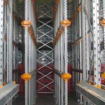 Italian Racking Systems ARMES Type drive in. The forklift enters the corridors with the forks lifted.